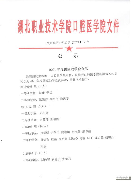 澳门网投唯一官网2020-2021学年度国家助学金名单公示