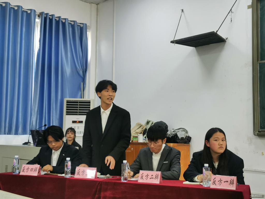 下午2点半,辩论正式拉开帷幕。主持人首先介绍了参赛的两只辩队以及到场的评委、观众。接下来,由正方一辩陈述论点,反方四辩对正方论点进行提问,再换反方一辩提出论点,正方四辩提问,后由正反方二辩进行申论,对方三辩进行提问。完成了两轮的提问与回答之后,由正反方三辩进行总结。之后就进入了最为激烈的自由辩,双方辩手不断的起身、坐下、问问题、回答问题,把整场比赛推向最激动人心的时刻。自由辩结束之后,再由反方四辩与正方四辩进行最后的总结。最后进行投票与点评,公布比赛结果。