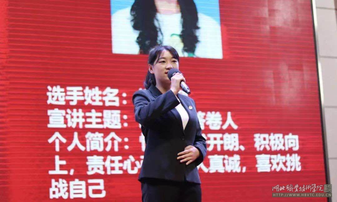 “优秀主讲人”环节由学生主讲,着眼讲新、讲活、讲出彩。并重点围绕学习宣传贯彻习近平新时代中国特色社会主义思想,巩固拓展党史学习教育成果,营造喜迎党的二十大良好氛围。杨菊柳以《时代的答卷人》为主题,讲述了从历史深处走来,向美好未来奔去,展望未来,新时代青年更应笃行不怠、奋发向上,在新时代征程中,留下了属于我们的青春印记。