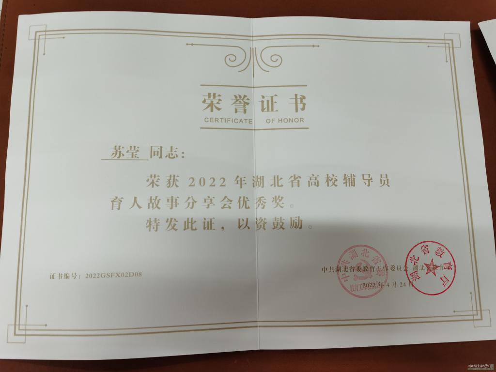 本次大赛由中共湖北省委教育工作委员会、湖北省教育厅主办,旨在树立科学育人导向,夯实一线学生工作,推动高校思政工作高质量发展,充分展现高校辅导员育人为本、立德树人的风采。本次比赛采取线上线下相结合的方式,澳门网投苏莹老师以“感恩“遇见””为主题,深情讲述我校励志学子熊文文的求学事迹,全面展现出澳门网投辅导员围绕学生、引领学生、服务学生的能力和成效,荣获辅导员育人故事分享会优秀奖。
