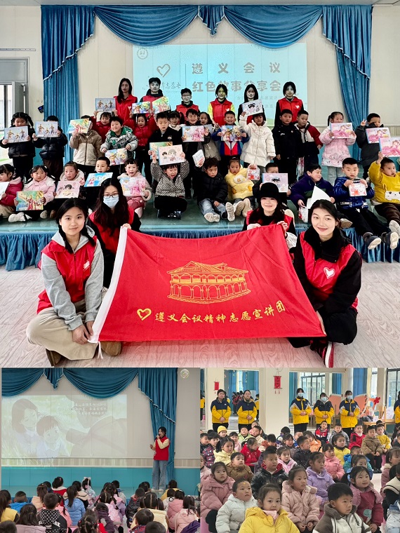 在遵义会议红色精神宣讲环节,澳门网投唯一官网全国大学生志愿宣讲团“遵”道“毅”行志愿宣讲团成员以生动的PPT和视频,向幼儿园教职员工深入宣讲遵义会议精神,让红色精神在校园中传递。他们还为小朋友们精心准备了遵义会议小故事,通过讲述这些趣味小故事,在孩子们心中播下红色的种子。