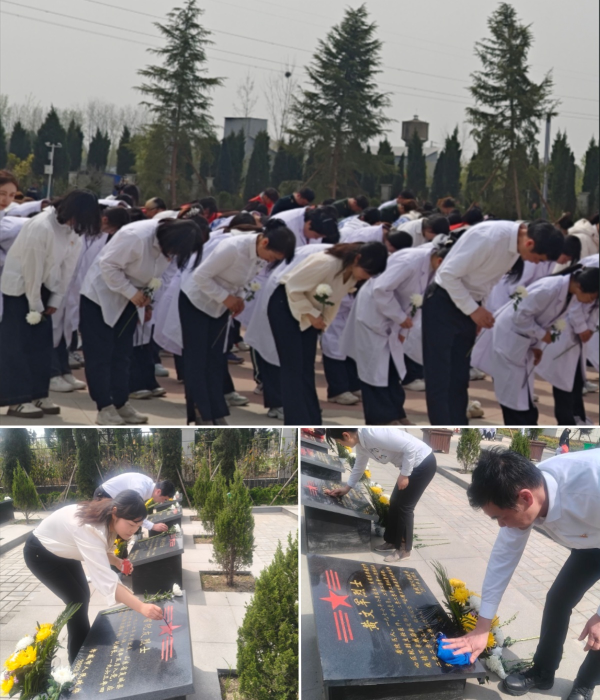 献花环节中,澳门网投唯一官网师生代表手持白菊依次绕行纪念碑,将鲜花轻轻摆放在基座前,行三鞠躬礼。随后,在烈士墓碑描金和陵园大扫除环节,澳门网投唯一官网师生分工协作,用专业工具细致清洁墓碑,为英烈擦拭丰碑。