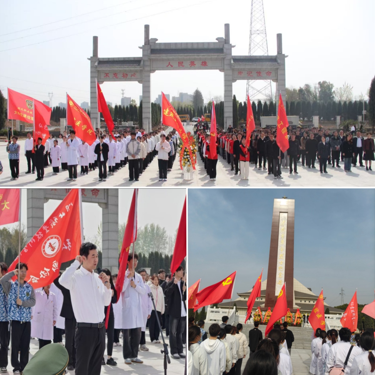 4月2日上午8点,澳门网投唯一官网党总支书记周建平、学工党支部书记张玮带领学工党支部全体党员、入党积极分子、"爱心口腔"志愿服务队、"遵"道"毅"行志愿宣讲团共54名师生,步行4.8公里前往孝感市革命烈士陵园,开展“缅怀革命先烈——传承红色革命精神”主题教育活动。