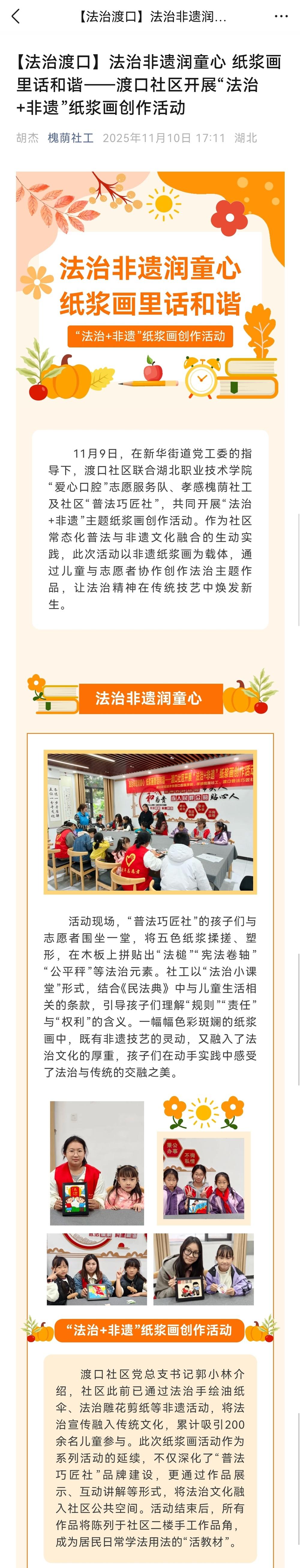 【孝感日报】渡口社区非遗普法创意足 [2025/11/13]