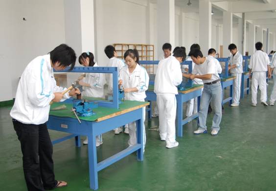 学生在参加钳工项目实训
