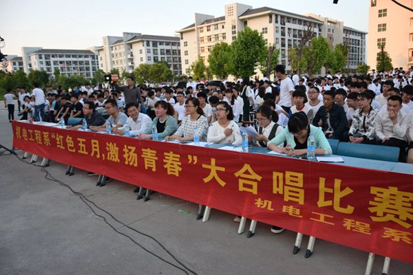为深入开展“两学一做”学习教育,丰富校园文化生活,共建文明校园,彰显当代学子的青春风貌。机电工程系团总支于5月11日晚在院食堂广场举行了“红色五月,激扬青春”大合唱比赛,机电系14、15级的全体班级均参加了此次比赛。系分管学生工作负责同志、团总支负责老师及各班辅导员、班主任老师观看比赛并应邀担任评委。