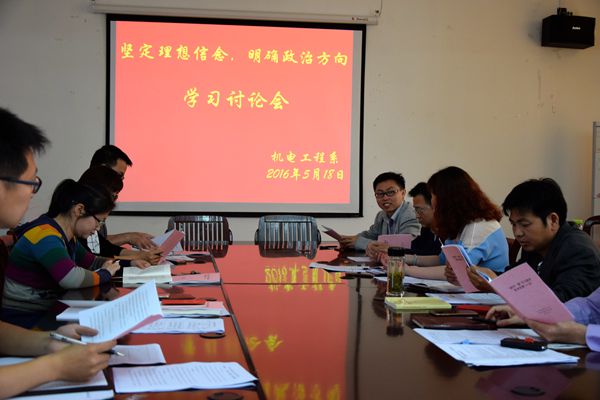 5月18日上午,机电工程系党总支在一栋教学楼208会议室召开了“坚定理想信念,明确政治方向”专题讨论会。系党总支副书记主持会议。