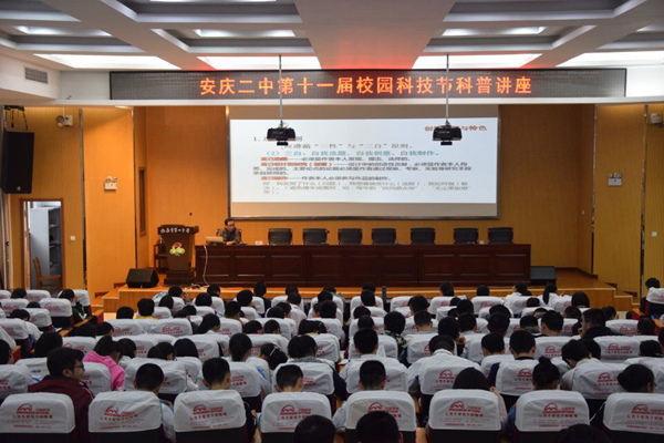 为培养青少年学生的创新精神和实践能力,提高青少年科学素质,3月26日下午我系教学工作负责同志受安庆二中邀请,在二中报告厅参加安庆二中第十一届青少年科技创新科普讲座。