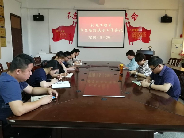 为了加强学生思想政治工作,夯实校园安全防线,5月29日,机电工程系于1栋208会议召开学生思想政治工作会议,该系分管学生工作负责同志、团总支书记、全体专兼职辅导员参加会议。会议由该系分管学生工作负责同志主持。