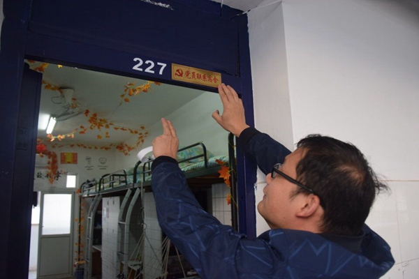 启动仪式后,全系党员教师分别深入到各自联系的学生宿舍,悬挂党员联系宿舍牌,填写联系记录本,与学生建立微信群并亲切和同学们交谈,了解思想生活及学习情况。