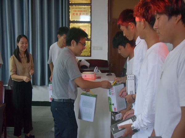 座谈会结束后,与会领导、老师们给学生们发放了节日慰问品。