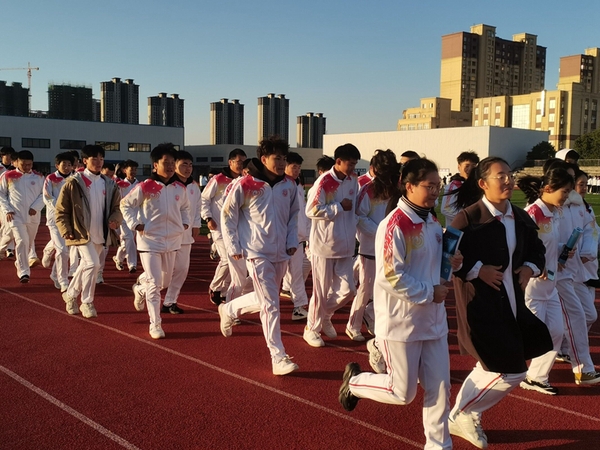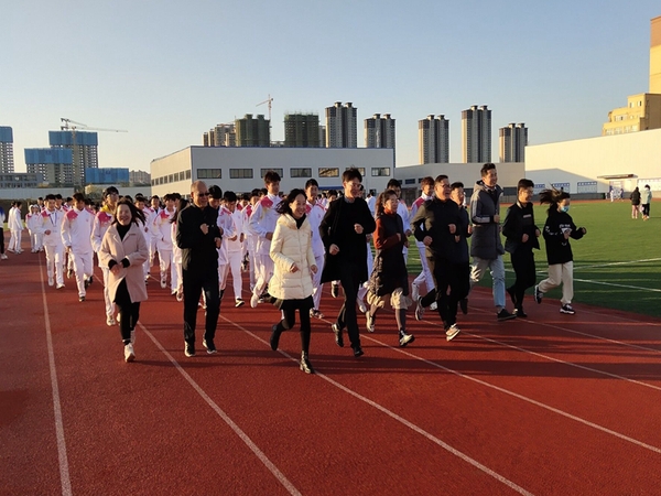 学生工作负责同志宣布本次晨跑活动正式开始后,在各位老师的带领下,同学们迈着豪迈的步伐开始向前。整齐的队伍,一致的步伐,为这个冬日寒冷的校园增添了一份温暖。迎着晨曦温和的阳光,同学们热情高涨、青春洋溢。