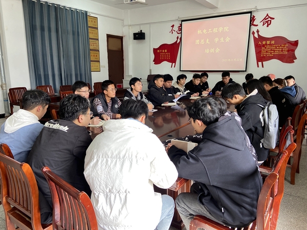 11月22日中午,机电工程学院2021年秋季学期学生会组织工作人员培训会在1号教学楼208会议室召开。学院团总支负责人,学生会指导老师出席本次活动。院学生会组织全体成员参加本次培训。