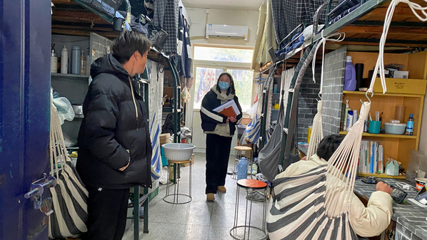 各专、兼职辅导员老师认真细致地检查了宿舍楼内的每一间宿舍,对宿舍内卫生、用电安全以及防火防盗等安全隐患进行了重点检查,对存在安全隐患和卫生问题的宿舍,现场进行了整改,在检查过程中,老师们与同学们进行了面对面的交流,通过交流了解学生思想动态以及碰到的问题,并积极进行反馈和耐心解答,要求同学们要提高财产安全(防诈骗)、人身安全(翻墙)、交通安全、网络安全等各类安全防范意识,帮助同学们尽快适应新学期的校园生活。