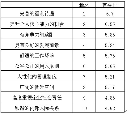 提要:近日,某招聘网站发布了《中国年度最佳雇主大学生调研报告》。报告显示,即将进入职场的大学生们,对“福利待遇”的关注最为强烈,其次是“提升个人核心能力的机会”,而“薪酬”则只排在了第三位。  调查显示,薪酬不再是大学生择业最关键的因素 近年来,大学生就业一直是全社会的关注焦点。在读大学生是企业的潜在员工,也是企业未来人才的主要来源。他们心目中理想的最佳雇主以及对不同企业的评价,会直接或间接地影响其求职行为。目前在读的大学生以90后的新生代为主,新一代大学生在职业偏好,对理想雇主的评价及其背后的价值观念与80后一代是否有显著改变? 近日,智联招聘发布了《中国年度最佳雇主大学生调研报告》。报告显示,即将进入职场的大学生们,对“福利待遇”的关注最为强烈,其次是“提升个人核心能力的机会”,而“薪酬”则只排在了第三位。除了线上调查以外,为了能够更加准确深入地了解当代大学生对于优秀雇主的认知,此次调查特别对22所高校大学生进行线下调查,回收2149份有效完整问卷。在这22所高校中有11所是985高校,有19所是211高校。人力资源专家认为,了解和分析大学生的选择,对企业的校园招聘策略以及企业雇主品牌建设和传播有着极大参考价值。 薪酬在大学生就业指标中位居第三 被调查学生通过选择自己心目中最理想的十个雇主和十个理想雇主中更希望去工作的5家雇主,以及5家雇主的各项指标感知打分,每家雇主获得大学生在雇主声誉、雇主吸引力以及雇主品牌感知上的得分,将这三项转化成标准分后相加,即企业在大学生外部雇主品牌调查中的得分。最终,通过企业外部得分与专家评议,产生年度最受大学生关注雇主。安利中国、百度、腾讯等知名企业此次均榜上有名。 本次大学生线下调查建立了一个与外部公众调查一样的包含6大项一级指标和23小项二级指标的综合指标体系,以刻画最佳雇主应具备的特征。在6大项指标中,组织管理、雇主形象、薪酬福利三大块更受大学生关注。 具体到21个小指标上,大学生最关注完善的福利待遇、提升个人核心能力的机会、有竞争力的薪酬、具有良好的发展前景、舒适的工作环境、公平公正的用人原则、人性化的管理制度、广阔的职位晋升空间、高度重视企业社会责任、和谐的内部人际关系成为大学生最关注的十大指标。可见90后对于雇主的期望较高,对于理想雇主的要求也更加全面和立体。除了基本的薪酬福利、晋升空间硬性指标外,他们关注个人在工作中的价值实现以及企业价值观、内部企业文化以及人际关系等软指标。 国企吸引力直逼外企 同时,调查数据显示,国企吸引力不断上升(23.6%),与外企具备相同的吸引力(24%)。除了选择继续深造以外,985院校的本科生更倾向于选择外企,而非985院校的本科生则更倾向于选择国企和政府部门工作。 来自中国南方人才市场的数据显示,约有43%的企业对求职人员的学历要求比较灵活,随着用人理念的日益成熟,企业更加注重人才的价值取向和实际工作能力,逐步淡化对求职者的学历要求。但与此同时,求职者群体的学历层次却在不断攀升。从全年求职者情况数据显示,大专以上学历的求职者占到总数的98.6%,本科学历比重约占40%,拥有研究生学历的求职者也在日益增多。在越来越多的高学历者进入求职行列的同时,企业却不拘泥于学历,而是更看重个人实际工作能力,因此,拥有文凭在身的大学生们明显感受到这种竞争的压力。 “正如此次调查所显示出的,大学生最为关注就业后的福利待遇,国企和外企在这方面通常更为出色”,人力资源专家分析,这种选择上的倾向性导致大学生对国企和外企青睐有加,“国企的吸引力能够与外企相抗衡,正是因为近年来大学生就业更加偏重稳定性”,作为职场新鲜人的新入职大学生频繁盲目跳槽的现象已经越来越少,“职场跳蚤”的简历也不被有实力企业的HR们所看好。 从行业分布来看,大学生更加关注IT互联网、电子通讯、快速消费品、金融、汽车等行业。这一数据表明,大学生关注度高的雇主几乎无一不是高度重视校园雇主品牌建设与传播工作的优秀雇主,他们在校园招聘与校园雇主品牌推广中进行了大量的工作。随着刘易斯拐点的到来,校园人才的争夺战也越来越激烈,显然关注雇主品牌建设的企业将在此次战役中取得先机。 大学生关注最佳雇主十大指标  |