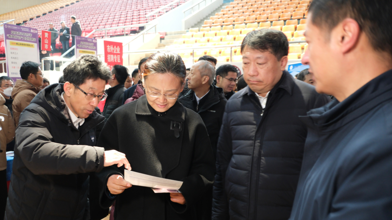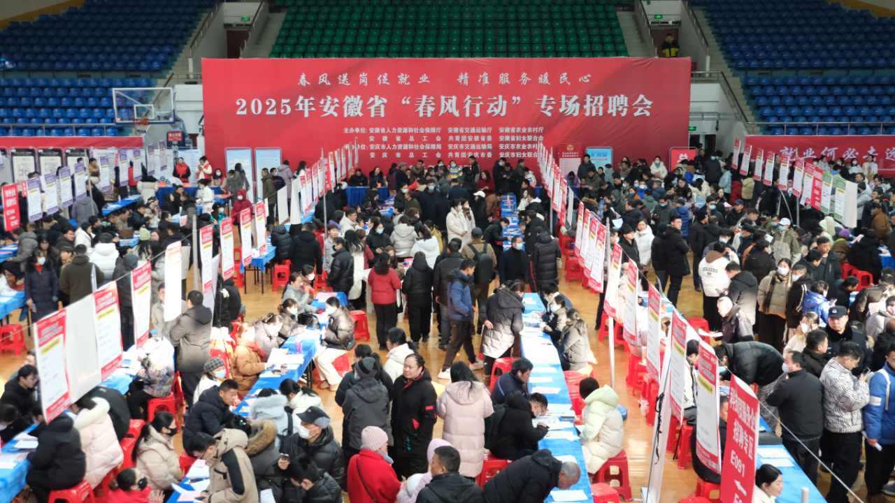 2月9日上午,安徽省2025年“春风行动”新春大型招聘活动在安庆市体育馆盛大开场。beat365党委副书记、校长毕明生、党委副书记李克让率队,招生就业处、各二级学院相关负责同志、专业建设负责人、毕业班辅导员等参加活动。