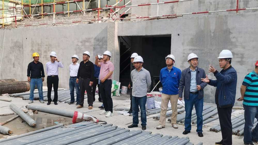 在建筑工法创新实践中心施工现场,检查组一行了解施工进度及方案,检查了满堂支架的搭设情况,并结合该项目在室内作业的实际,着重强调消防隐患的排查、消防应急预案等。
