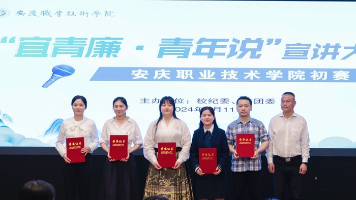 本次大赛以习近平新时代中国特色社会主义思想为指导,以“青年·清廉——扣好廉洁从政'第一粒扣子'”为主题,紧密围绕学习党的二十大精神,以常规宣讲、文艺宣讲、情境式宣讲三种形式,讲述“廉洁、自律、青春、担当、奉献”的安庆职院青年故事。大赛自4月20日启动以来,经认真组织、广泛宣传,各二级学院在院内选拔的基础上,共推荐9位青年教师登上了学校初赛的舞台。
