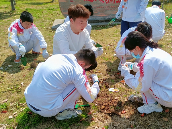 3月12日,团总支开展植树节志愿服务活动,同学们穿着校服,佩戴口罩,三五人一组,挖坑栽树、挥锹铲土、扶苗填坑,各个环节衔接有序,配合默契,不久几十棵月季花树苗便种植完毕,四周的空地转瞬间变为一道靓丽的风景线,给校园增添了勃勃生机。