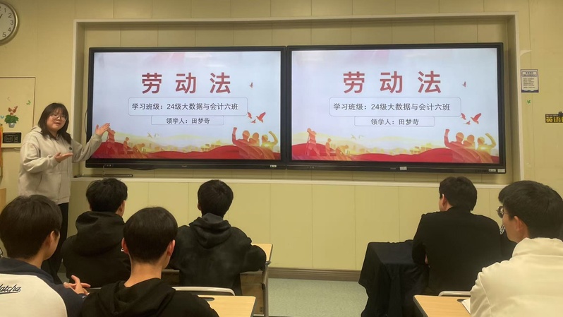 3月2日,24级大数据与会计六班于503教室举办了一场主题为“走近劳务法规 守护青春权益”的法律学习活动,旨在让同学们深入了解劳动法律,提升同学们的法律意识和自我保护能力。
