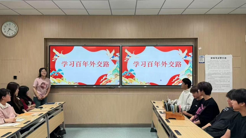 为深入学习中国外交历史,感悟百年来中国从“弱国无外交”到“大国外交”的沧桑巨变,5月12日晚,大数据与会计四班于507教室开展了“百年外交路:从屈辱到崛起的中国外交史探寻”主题活动。活动通过历史分享、模拟外交谈判等形式,让同学们沉浸式体验中国外交的艰辛历程与辉煌成就,现场气氛热烈,反响深刻。