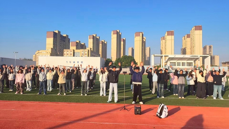 清晨,各班级同学准时集结于运动场地,在团学干部的带领下,伴随着舒缓悠扬的音乐,凝神静气、循序渐进地完成“两手托天理三焦”、“左右开弓似射雕”等八段锦动作。抬手、转身、屈膝、拉伸,每一个招式都舒展流畅,既展现了传统功法的柔美韵味,又透着青春学子的蓬勃朝气。晨光洒在同学们认真的脸庞上,整齐划一的动作成为校园清晨最亮眼的风景线。