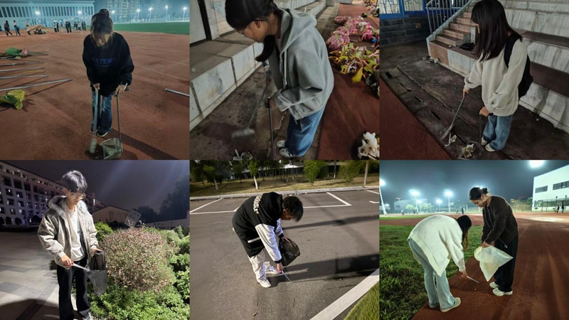 活动先以主题宣讲的方式详细阐释了垃圾作为校园“环境杀手”对校园生态和公共卫生的不良影响。随后,同学们将校园划分为教学区、生活区、操场及绿化带等重点区域,规划分工开展“地毯式”清理。大家手持夹子、垃圾袋等工具,拾捡隐藏在草丛、石阶缝隙、墙角等处的垃圾。活动过程中,同学们的行动感染了路过的学长学姐,不少人主动加入拾捡队伍,形成“人人参与、共建文明”的良好氛围。