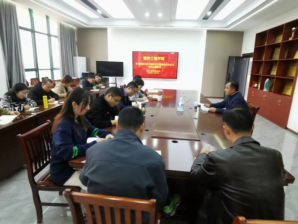 11月22日下午,建筑工程学院在1号教学楼5楼党员活动室召开学习贯彻习近平新时代中国特色社会主义思想主题教育学习会。校党委委员、副校长程飞为建筑工程学院全体党员讲授专题党课。建筑工程学院党总支书记、院长陈月萍主持会议。