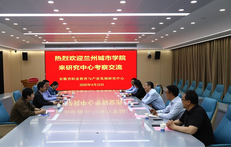4月15日,兰州城市学院副校长李慕堂率队来安徽省职业教育与产业发展研究中心考察交流。校党委副书记、校长、研究中心主任毕明生热情接待了李慕堂一行。