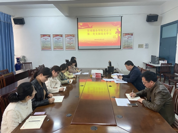 为确保党史学习教育取得扎实成效,坚决做到学史增信、学史力行,推动党史学习教育入脑入心,3月31日下午,管理服务学院第一、二党支部分别在3号教学楼214教室、314会议室开展党史学习教育专题活动,该院党总支班子成员均以普通党员身份参加支部学习。