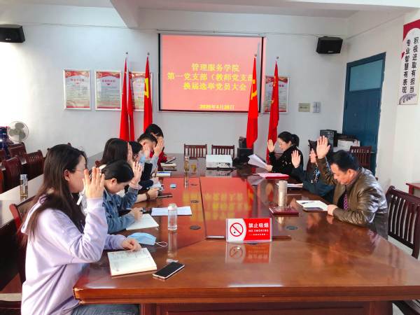 为进一步加强党的基层组织建设,根据《中国共产党章程》和《中国共产党基层组织选举工作暂行条例》的有关规定,4月28日下午,管理服务学院第一党支部(教师党支部)和第二党支部(学生党支部)分别在学院会议室和214教室举行了党支部换届选举大会。