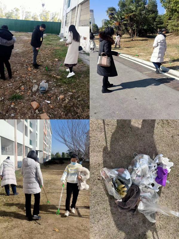 在学院领导班子的带领下,党员教师们集体行动,手拿夹子、垃圾袋等清洁工具,两人一组,三人一行,分工明确,干劲十足,仔细清理捡拾道路、绿化带里面的塑料袋、烟头、塑料瓶等垃圾,不放过一处垃圾死角。一些散落在绿化带的白色垃圾,用夹子夹不起来,索性用手捡……经过大家1个多小时的忙碌,垃圾袋里面都是战果累累,回望清理后的区域,干净整洁,责任区得到了进一步的改善,环境面貌焕然一新。