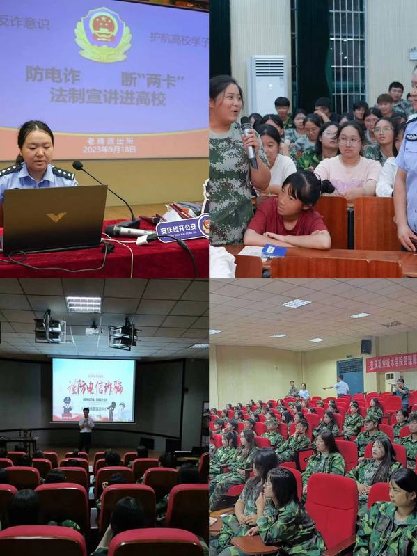 为增强大学生安全意识,有效防范电信网络诈骗,营造平安和谐稳定的校园环境,管理服务学院联合安庆市公安局经开分局反诈中心、老峰派出所,于9月18日晚在图文信息中心一楼报告厅举办了反诈主题讲座, 旨在引导新生养成良好的上网习惯,提高自我防范意识,不抱侥幸心理、不贪图小利,不做电信诈骗的受害者,守护好自己的财产安全。后续,学院将陆续开展心理健康安全教育。