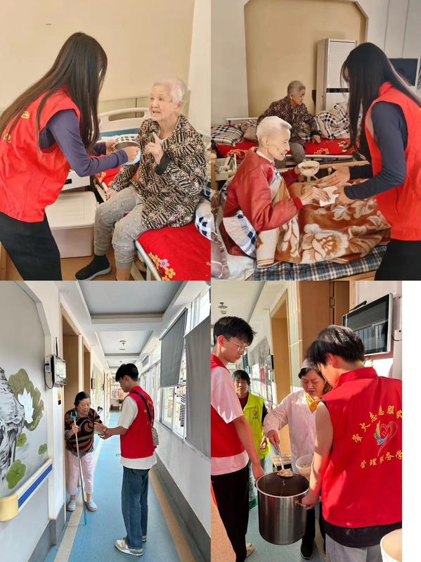 9月9日下午,来自智慧健康养老服务与管理等专业的志愿者们在党员教师的带领下来到了安庆怡人堂养老院。在院方的精心安排下,志愿者们将食堂煮好的银耳汤端到了老人们的房间门前,细心地帮他们洗干净碗勺,为每位老人盛上热乎乎的银耳汤。随后,党员教师和学生志愿者们帮爷爷奶奶们剪指甲、整理衣物并陪老人们唠家常。每一句热情洋溢的话语,都寄托着美好的愿望和期望。志愿者们无微不至的服务与话语,使老人们在节日中体会到深深的暖意。