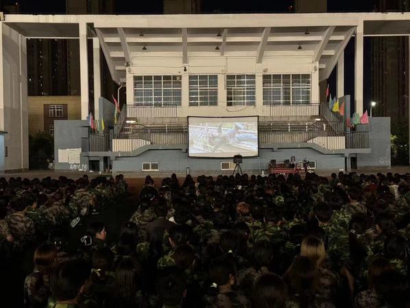 9月18日晚19:00,院学生工作负责同志带领新生辅导员与全体2024级新生在体育场集体观看了影片爱国主义影片《战火黎明》,六营全体军训在总教官的带领参与了观影活动。影片讲述八路军赵崇光联合戈山厂热血青年张二嘎组成特战小分队,秘密击溃日军的第二道军事防线,保卫民众,抵抗日军,在历经了一次次生死悲壮的战斗后取得胜利的热血故事。观影过程中,同学们被英烈们英勇斗争和牺牲精神所感染,不少同学眼中闪烁着泪花,为那些英勇牺牲的先烈们感到惋惜。观影结束后,同学们在观后感中写到:要勿忘历史、珍惜和平、努力学习,为中华民族的伟大复兴贡献青春力量。