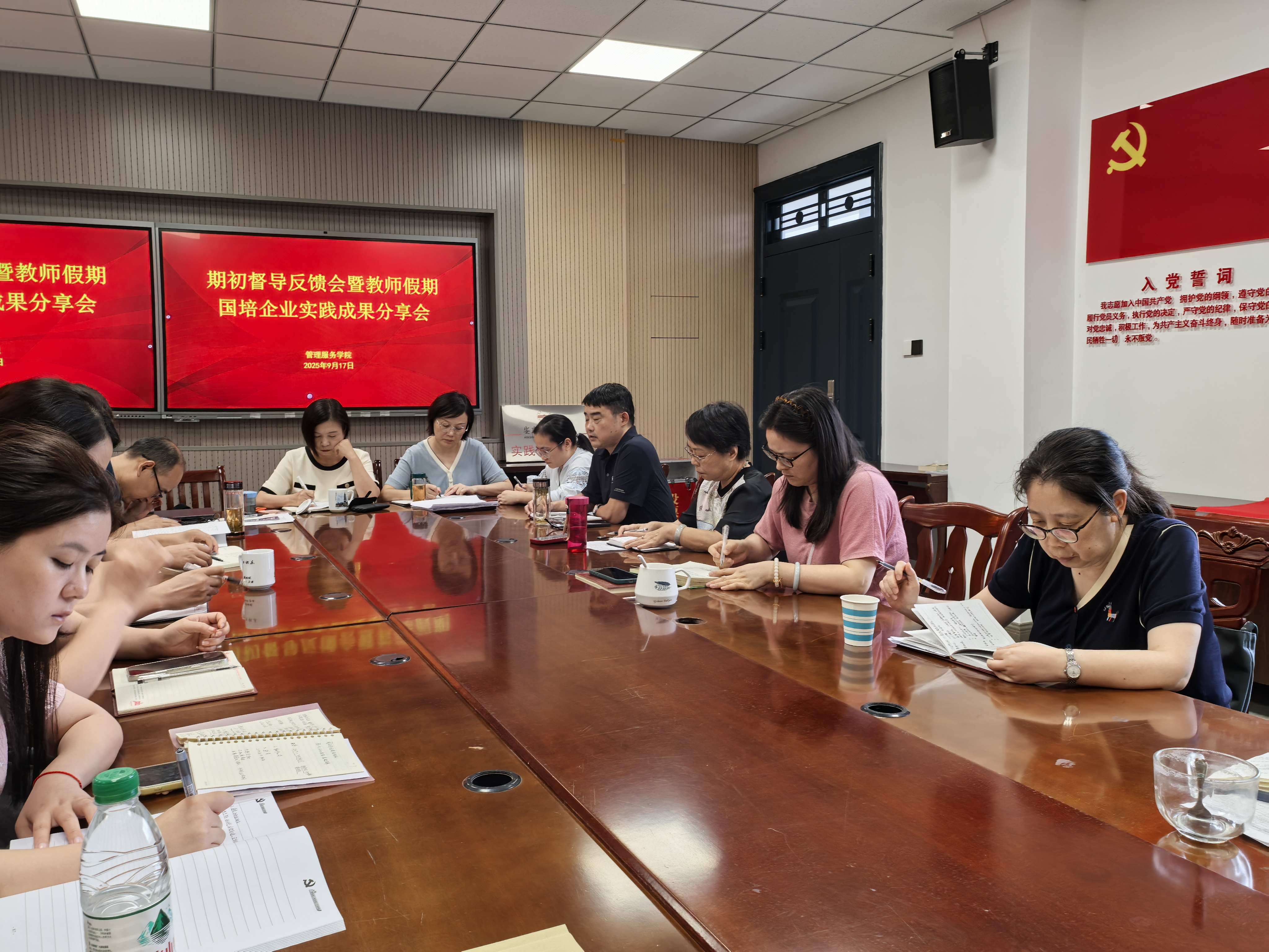 9月17日,管理服务学院召开2025-2026学年第一学期期初督导反馈会,并同步举行暑期国培、执裁、挂职等实践成果分享。校教学督导朱宜娟、郭媛媛、黄先军三位副教授应邀出席,学院全体教师参会。