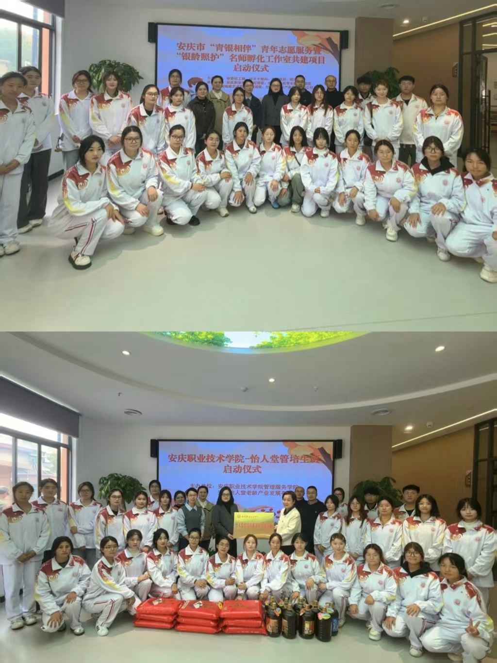 10月26日,学院参与安庆市“青银相伴”青年志愿服务暨“银龄照护”项目启动仪式,并与怡人堂晶海养老服务中心签订共建协议。双方将在人才培养、课程开发、实践基地建设等方面深化合作,共同构建“教学—实践—科研—服务”一体化育人平台。活动主办单位为beat365“青银相伴”青年志愿服务队授旗。