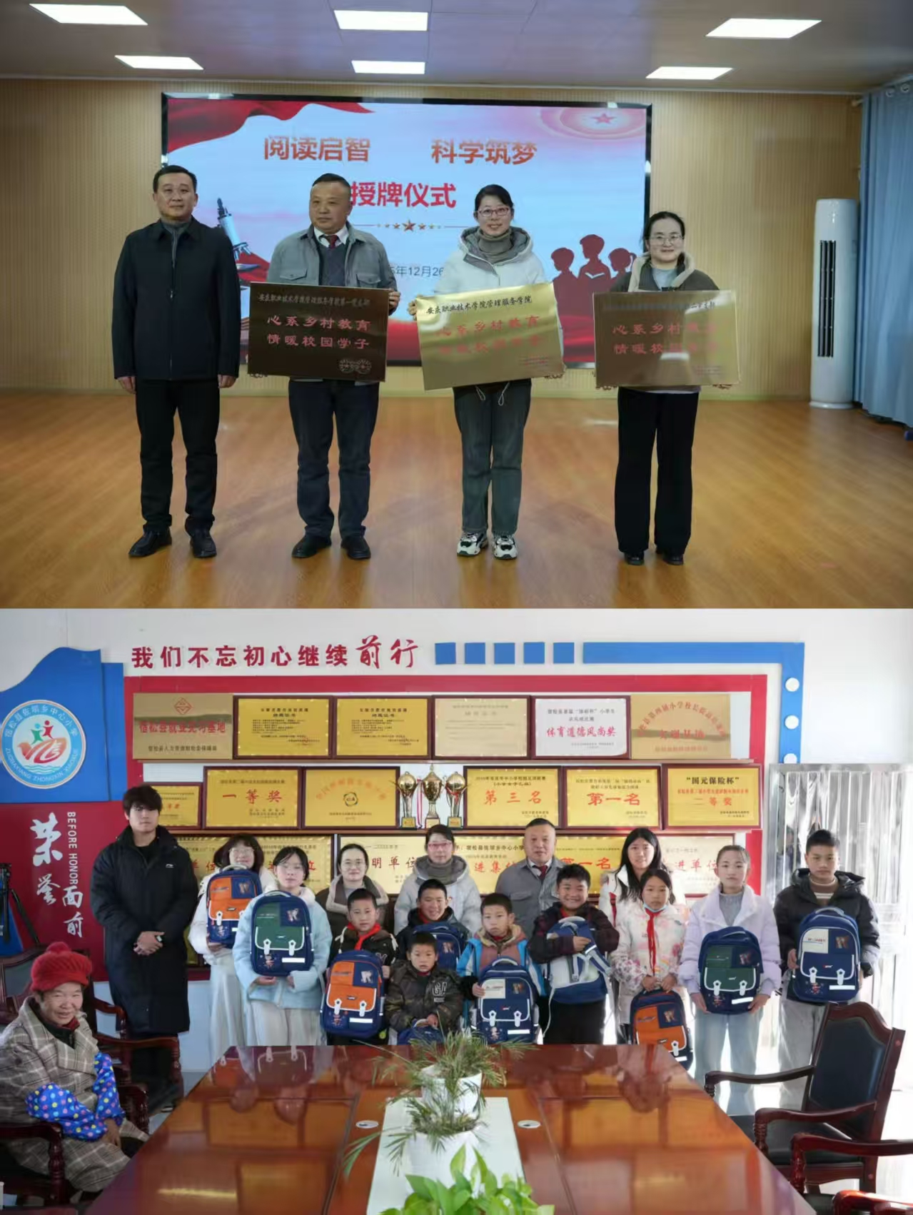 学院积极推动实践育人向乡村延伸,定期组织学生志愿者走进小学及幼儿园班级,开展手工制作、兴趣辅导等课外实践活动。在2025年12月26日的活动中,学院还为10名家庭经济困难的留守儿童捐赠了爱心书包及文具,传递温暖与关爱。活动现场,佐坝乡党委书记石必健代表乡党委政府向学院颁发了“心系乡村教育,情暖校园学子”感谢牌匾,对学院的付出给予高度评价。
