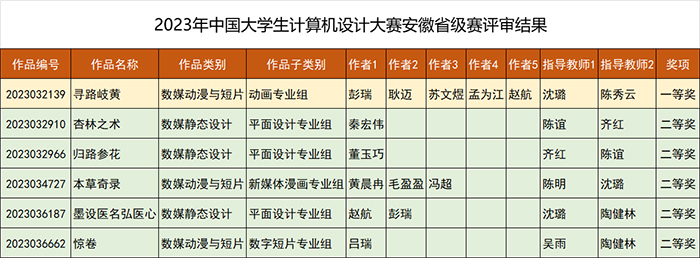 近日,2023年中国大学生计算机设计大赛安徽省级赛评审结果出炉,beat365信息技术学院教师指导的学生作品共获得一等奖1项、二等奖5项、三等奖5项的好成绩。