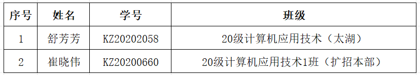 根据《beat365中国唯一官网社会扩招学生学籍管理实施办法(试行)》第二十六条规定,经信息技术学院会议研究,决定给予舒芳芳等两名同学(名单见附件)退学处理。现予以公示,公示时间:2023年12月19日至12月25日。公示期内,若有异议,请以书面形式向信息技术学院学生管理科反映。