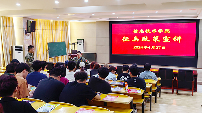 奔赴荣光,点燃报国梦。“参军需要满足哪些基本条件?如果我选择入伍,未来职业发展该如何规划?”为进一步加强大学生对国防教育的了解,宣传国家征兵政策和大学生参军入伍的重要意义,激发大学生为实现中国梦、强军梦而奋斗的热情和动力,我院特邀请迎江区人民武装部工作人员给返校学子开展征兵政策宣讲。工作人员详细介绍了大学生应征参军的报名流程,向同学们展示了应征入伍在优先选拔、创业优待、报考研究生和报考公务员等方面的惠兵政策,极大地鼓舞了同学们的参军热情。随后,工作人员又针对同学们对于征兵工作的具体疑问进行了耐心、详细的解答。此次宣讲会充分调动了同学们参军入伍的积极性,增强了同学们对入伍政策的了解和军营生活的向往。