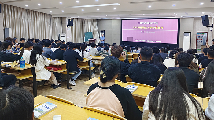 金秋九月的最后一周,在2024级新生即将结束军训生活、开始专业学习之前,为帮助同学们充分了解自己所学专业,激发学习兴趣,明确学习目标,为未来三年学业规划打下基础,信息技术学院组织专业建设负责人分专业开展了10个场次的专业认知教育,全体957名新生分专业参加活动。