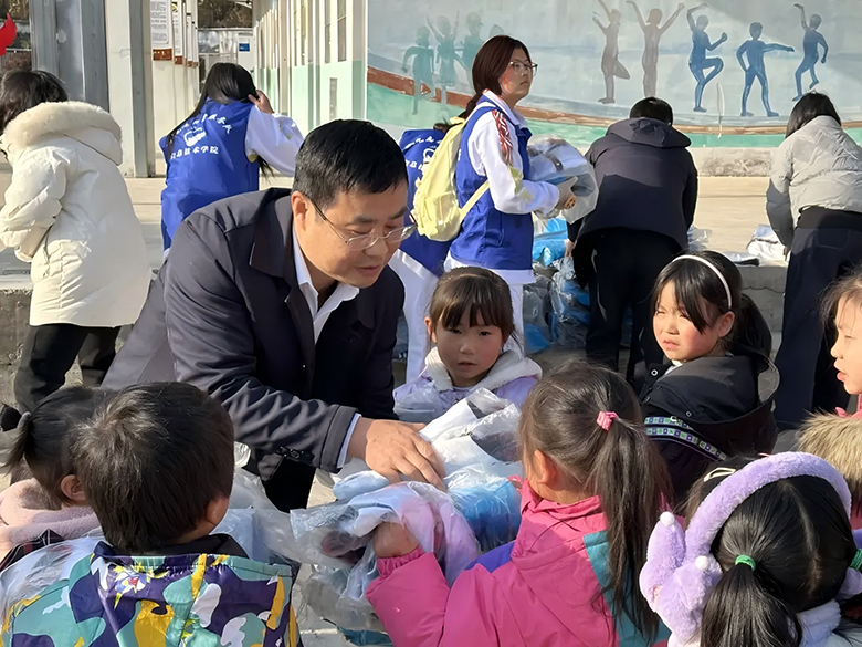 随后,疏国会一行与平岭小学师生在学校操场举行了简单而温暖的捐助仪式,疏国会带领党员同志和学生志愿者一起向平岭小学37名学生每人分发了一套冬季防寒保暖服和一套夏季校服。孩子们接过这份温暖的礼物,脸上绽放出如花朵般灿烂的笑容,眼中闪烁着对未来的无限憧憬与期待。