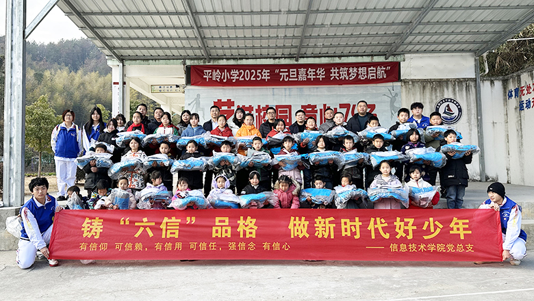 元月8日,信息技术学院党总支书记、院长疏国会率队赴太湖县天华镇平岭小学开展捐助活动。太湖县天华镇党委副书记张四为,镇经发办、乡村振兴办以及平岭村“两委”、平岭小学、驻村工作队有关负责同志热情接待了疏国会一行。信息技术学院党总支副书记陈富汉、教师党支部书记陶健林等党员同志及6名学生志愿者参加了捐赠活动。