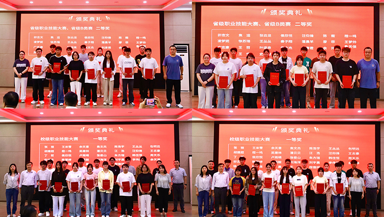 典礼在庄严而热烈的氛围中拉开帷幕。伴随着激昂的颁奖音乐,校级赛、省级赛、“一带一路”及金砖国家职业技能大赛的获奖选手依次登台领奖。学院专业建设负责人、行政管理人员及分管领导为获奖选手颁发证书,台上笑容洋溢,台下掌声雷动,现场气氛热烈,为获奖选手们送上了真诚的祝贺。