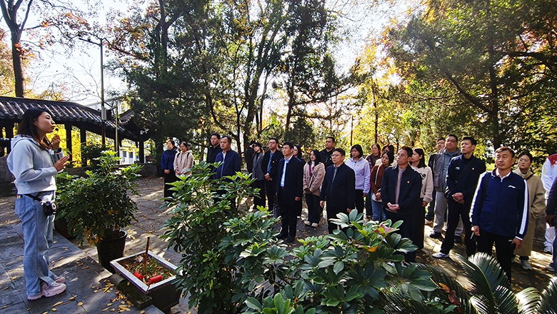 本次活动以“传承抗战精神,坚守教育初心”为主题,大家先后参观了野寨中学内的烈士陵园、筑梦广场、校史馆等地。