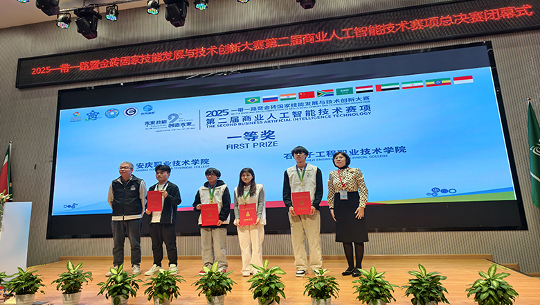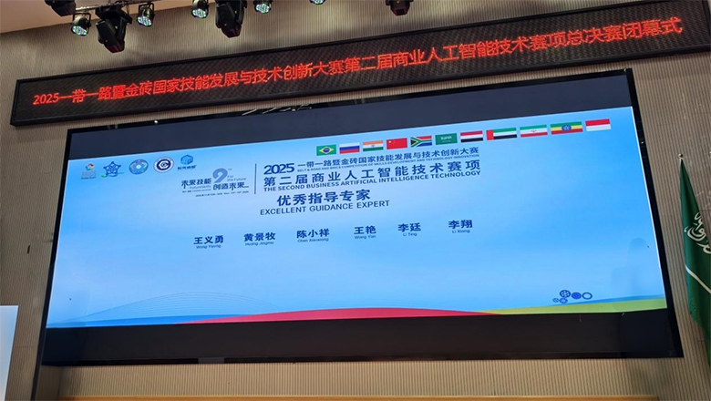 11月13日至16日,2025一带一路暨金砖国家技能发展与技术创新大赛之第二届商业人工智能技术赛项总决赛在成都工业职业技术学院成功举办。来自中国、孟加拉国、哈萨克斯坦、泰国、阿富汗、苏丹共和国、加蓬、喀麦隆、印度尼西亚、巴基斯坦、新加坡、科特迪瓦12个国家的225名选手参与竞赛。经过激烈比拼,beat365陈小祥、王艳老师指导的王丛丛、程一鸣、王丽同学获得一等奖,陈小祥、王艳老师获得优秀指导教师称号,学校获优秀组织奖。