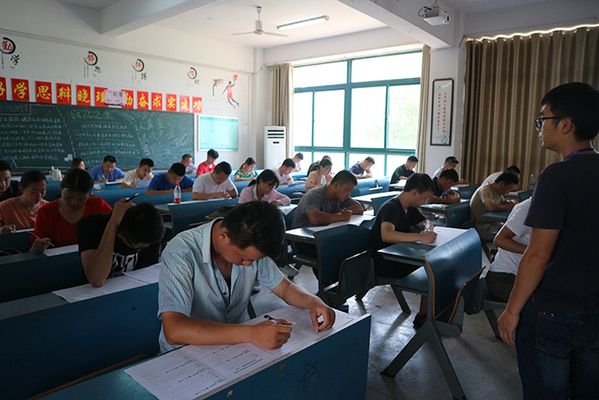 8月17日上午,我院举行面向社会人员扩招考试。三千余人参加考试。考试期间,省教育厅巡视员邹斌,市高教工委副书记陈亚玲、市高教工委副调研员吴宗亚,院党委书记王进,院长毕明生,纪委书记方天祜,党委委员、组织统战部长程飞到考场巡视指导。