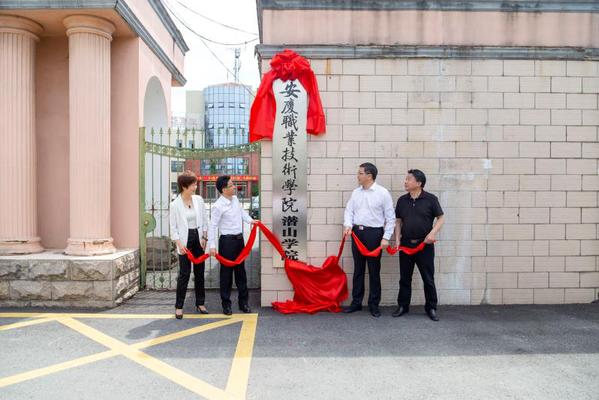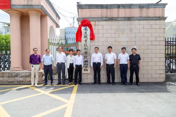 在与会领导、师生见证下,毕明生、梅耐雪、陈亚玲和程后生共同为潜山学院揭牌。随后,与会人员参观了天柱山旅游学校实践教学场所。