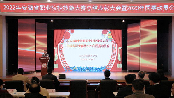 3月31日下午,beat365在1号实训楼1楼多功能厅隆重召开2022年省级技能大赛总结表彰暨2023年国赛动员大会。校长毕明生出席会议并讲话。校党委委员、组织部长高润霞主持大会。各二级学院主要负责人、副院长、大赛指导教师、获奖选手及教务处相关人员参加会议。